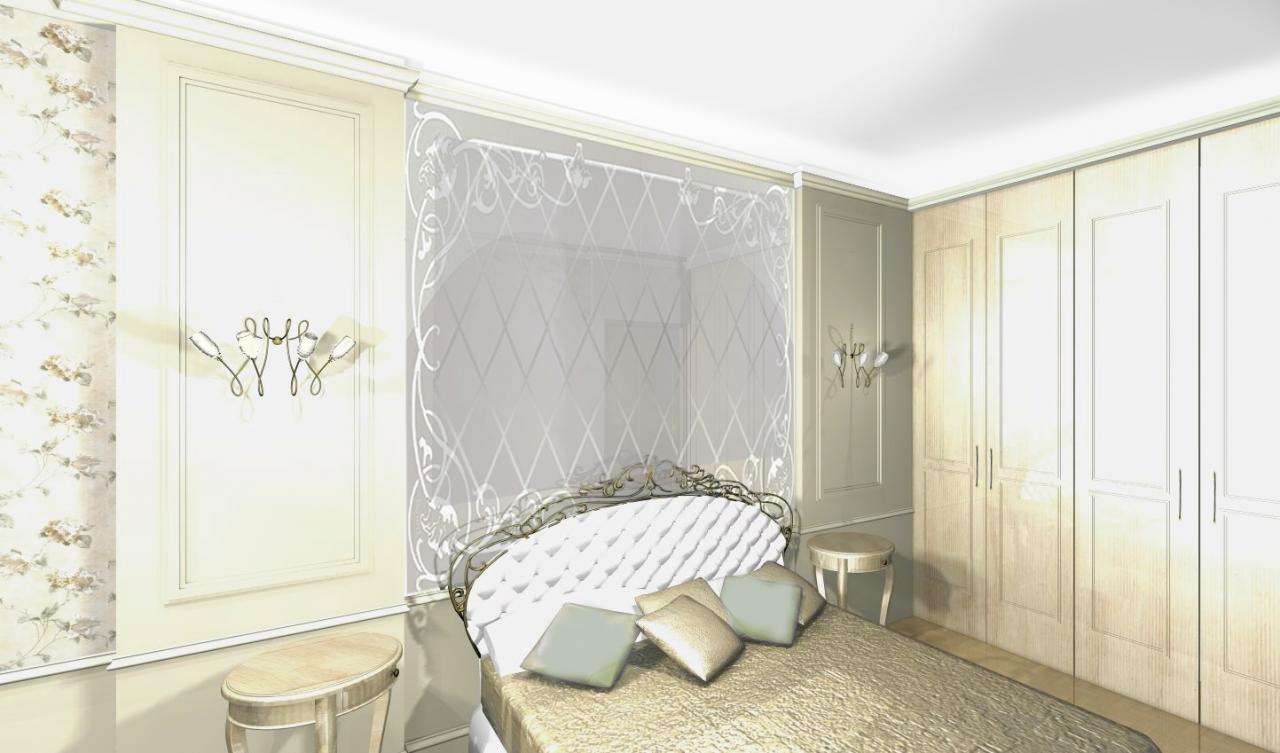 Комната спальни родителей изначально имела форму очень длинного прямоугольника, напоминающего скорее коридор. Поэтому для дизайнера стояла дополнительная задача - с помощью дизайна, визуальных приёмов исправить это неудобство и превратить «коридор» в стильную, приятную и удобную для отдыха спальню. И эта задача была успешно решена.