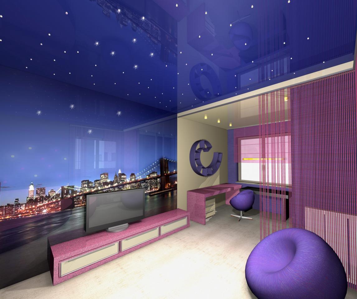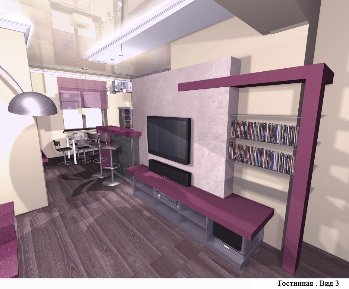 Главным фактором в выборе цветового решения интерьера послужила большая любовь к сиреневому цвету у дочки хозяев квартиры.